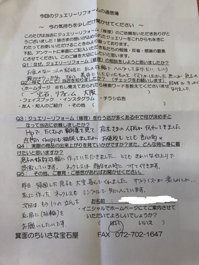 ホームページ(宝石 リフォーム 大阪)ジュエリーリフォームを行う店が多くある中で何が決め手となって当店に依頼をしましたか?