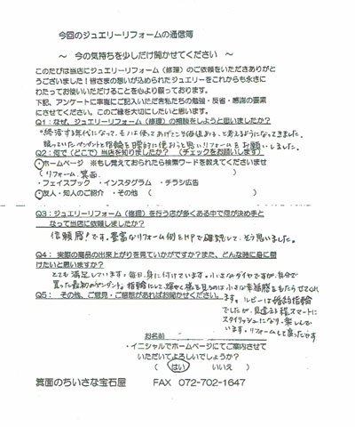 ホームページ(リフォーム 箕面)ジュエリーリフォームを行う店が多くある中で何が決め手となって当店に依頼をしましたか?