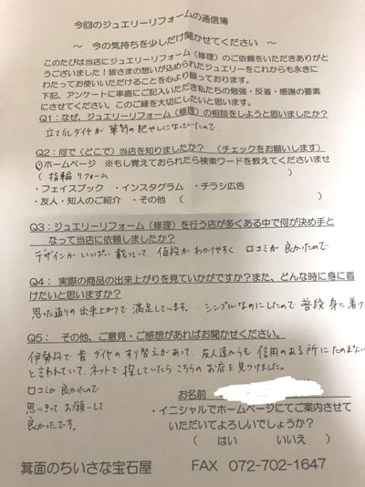 ジュエリーリフォームを行う店が多くある中で何が決め手となって当店に依頼をしましたか?