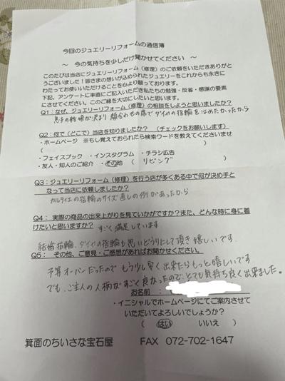 ジュエリーリフォーム お客様の声(561)