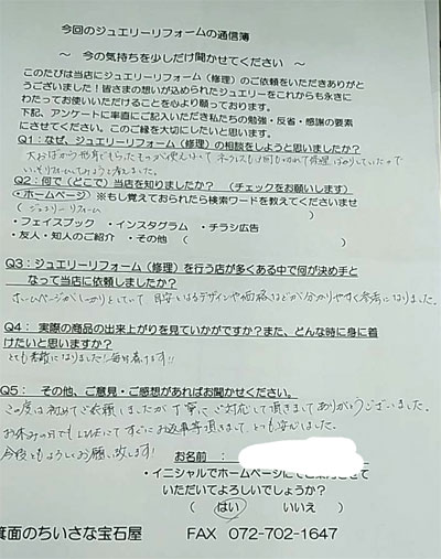 ジュエリーリフォーム お客様の声(576)