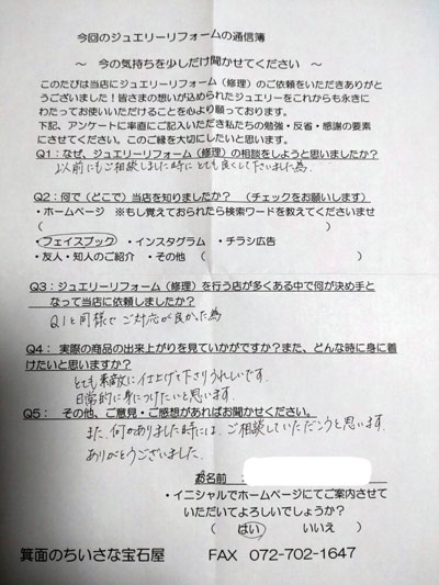 フェイスブックジュエリーリフォームを行う店が多くある中で何が決め手となって当店に依頼をしましたか?