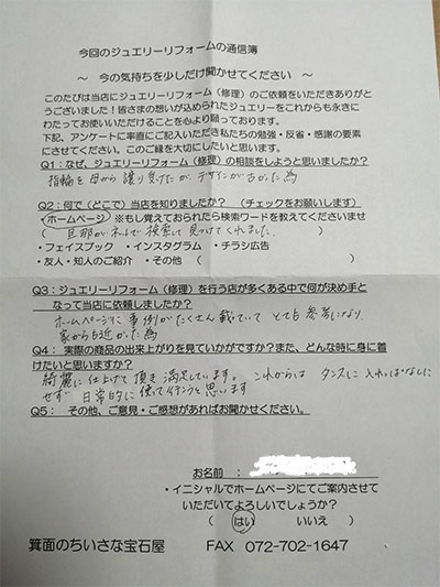 ジュエリーリフォーム お客様の声(582)