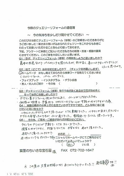 ホームページ(ジュエリーリフォーム・パール・ペンダント)ジュエリーリフォームを行う店が多くある中で何が決め手となって当店に依頼をしましたか?