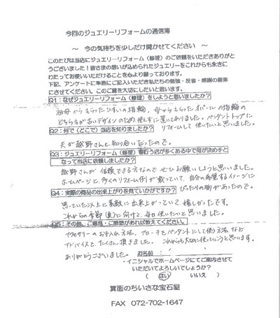 夫が越野さんと知り合いだったのでジュエリーリフォームを行う店が多くある中で何が決め手となって当店に依頼をしましたか?