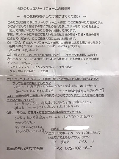 ジュエリーリフォーム お客様の声(610)