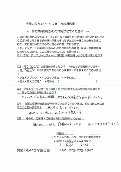 ホームページジュエリーリフォームを行う店が多くある中で何が決め手となって当店に依頼をしましたか?