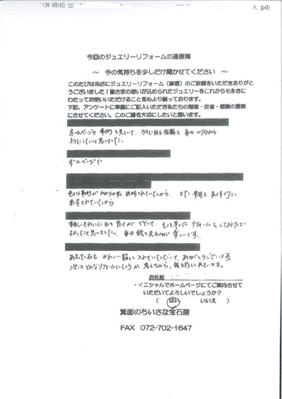 ホームページでジュエリーリフォームを行う店が多くある中で何が決め手となって当店に依頼をしましたか?