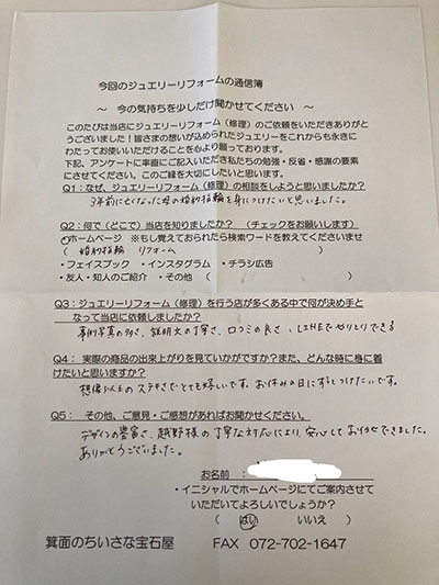 ジュエリーリフォーム お客様の声(631)
