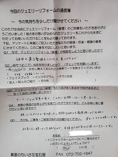 ジュエリーリフォーム お客様の声(644)