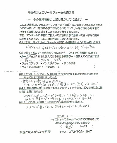 ホームページ(ジュエリーリフォーム 大阪)ジュエリーリフォームを行う店が多くある中で何が決め手となって当店に依頼をしましたか?