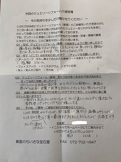 ホームページ(指輪 リフォーム )ジュエリーリフォームを行う店が多くある中で何が決め手となって当店に依頼をしましたか?