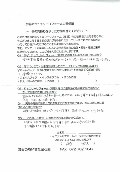 ホームページ(指輪 リフォーム )ジュエリーリフォームを行う店が多くある中で何が決め手となって当店に依頼をしましたか?