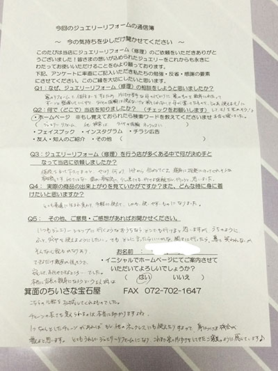 ホームページ(ジュエリーリフォーム ダイヤの指輪ネックレスに )ジュエリーリフォームを行う店が多くある中で何が決め手となって当店に依頼をしましたか?