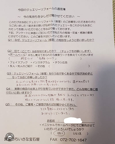 ホームページ(指輪 リメイク)ジュエリーリフォームを行う店が多くある中で何が決め手となって当店に依頼をしましたか?