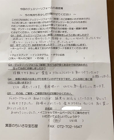 ジュエリーリフォーム お客様の声(688)