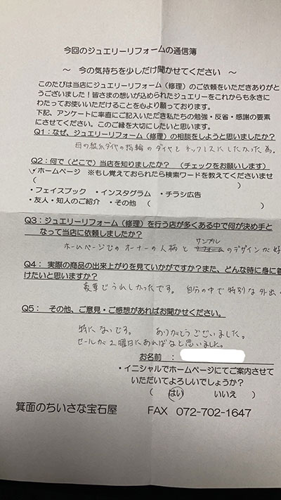 ホームページジュエリーリフォームを行う店が多くある中で何が決め手となって当店に依頼をしましたか?