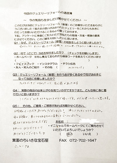 ジュエリーリフォーム お客様の声(704)