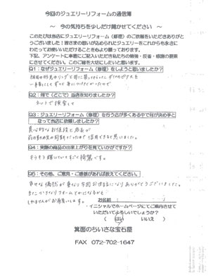ネットで検索してジュエリーリフォームを行う店が多くある中で何が決め手となって当店に依頼をしましたか?