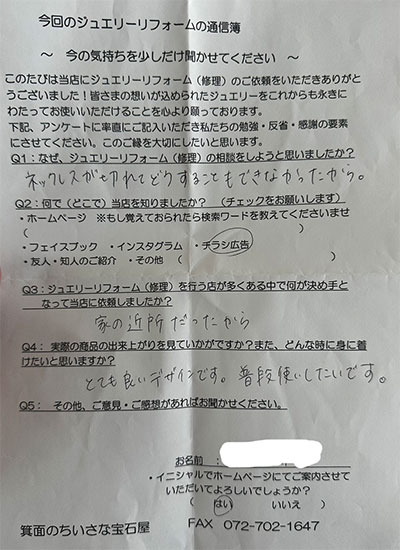 ジュエリーリフォーム お客様の声(717)