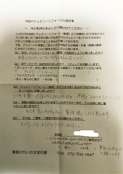 ジュエリーリフォームを行う店が多くある中で何が決め手となって当店に依頼をしましたか?