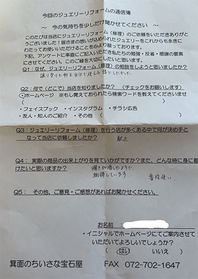 ホームページジュエリーリフォームを行う店が多くある中で何が決め手となって当店に依頼をしましたか?