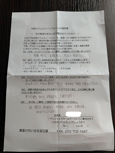 ホームページ(ジュエリーリフォーム)ジュエリーリフォームを行う店が多くある中で何が決め手となって当店に依頼をしましたか?