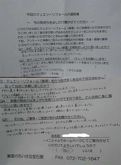 ホームページ「関西 指輪 リフォーム」ジュエリーリフォームを行う店が多くある中で何が決め手となって当店に依頼をしましたか?
