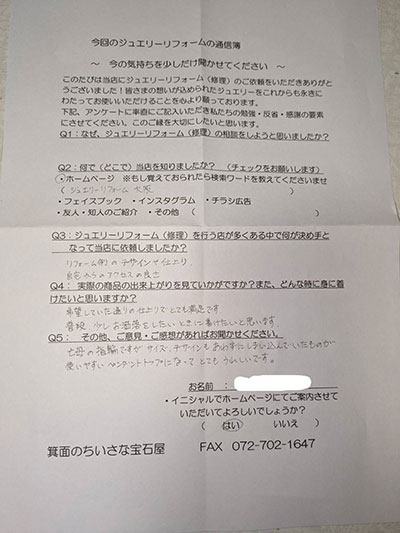 ジュエリーリフォーム お客様の声(797)