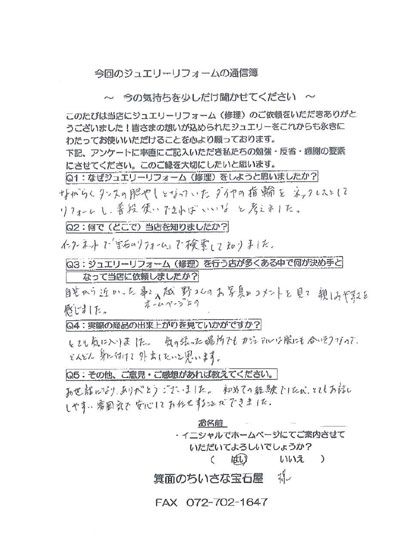 インターネットで「宝石のリフォーム」で検索して知りました。ジュエリーリフォームを行う店が多くある中で何が決め手となって当店に依頼をしましたか?