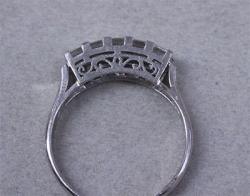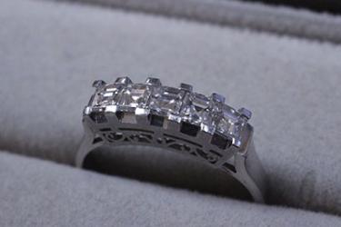多くは丸いラウンドのダイヤのものが多いですが、今回のデザインは角ダイヤを5石使った一文字タイプの指輪。