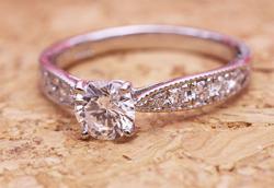 母から譲り受けたダイヤの指輪を使って、彼女へのエンゲージリングにリフォームしたいとご相談をいただきました。