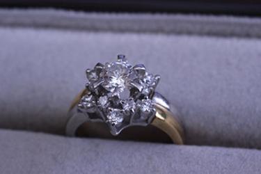 昔ならではの取り巻きのダイヤモンドの指輪。