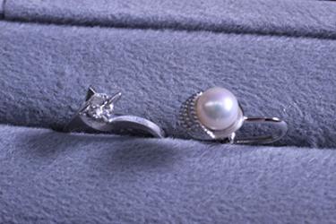 6mmサイズの真珠はイヤリングの片方。そして0.25カラットのダイヤモンドは婚約指輪。