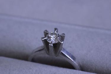 お母さんから譲り受けた立て爪のダイヤモンドの指輪。