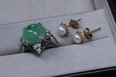 譲り受けたひすいの指輪と真珠のピアス。