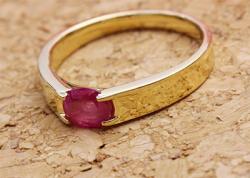 その中でお選びいただいたのが、ルビーを横に向けて、伏せこんだこちらのデザイン。素材はイエローゴールドでお作りさせていただきました。