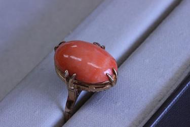 お母さまから譲り受けたさんごの指輪。