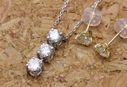 [ No.1403 ] ダイヤ5石の指輪をピアスとスリーストーンのペンダントにリフォーム