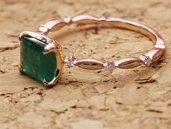 ご姉妹さんお揃いのデザインでルビー、そしてエメラルドの指輪をピンクゴールドの素材でそれぞれ作らせていただきました。