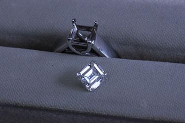 譲り受けた0.8カラットのエメラルドカットの指輪。