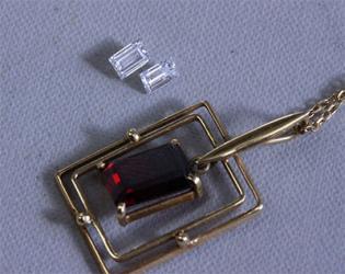 ガーネットのペンダント、そして以前のリフォームで余った角ダイヤを使って何かジュエリーを作ることができないか?