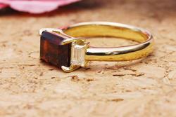 ガーネット、角ダイヤ k18イエローゴールドオーダーメイド指輪
