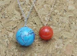 お客さまは最初、トルコ石もさんごも両穴をあけてチェーンを貫通させるタイプのペンダントをご希望になられてました。
