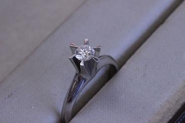 お持ちいただいたいのは0.27カラットの立て爪の指輪。