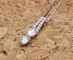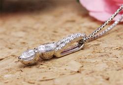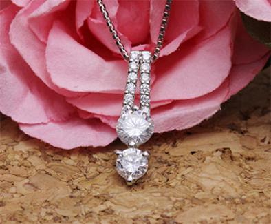 2つのダイヤモンドを使ったペンダントの既成デザインはほとんどないので、一般的にはタテに2つ並べるようなデザインをご提案させていただきます。