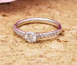 中央にある0.3カラットのダイヤをメインにした婚約指輪を。