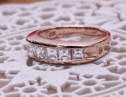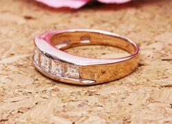 ご親戚にご結婚を控えた方がおられるそうで、自身の角ダイヤの一文字リングをリフォームしてプレゼントできたらとのご相談でした。