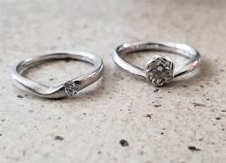 0.4カラットの婚約指輪と0.1カラット未満の結婚指輪。