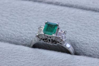 エメラルドとピンクゴールドの組み合わせをご提案させていただきとても気に入っていただき決めていただきました。